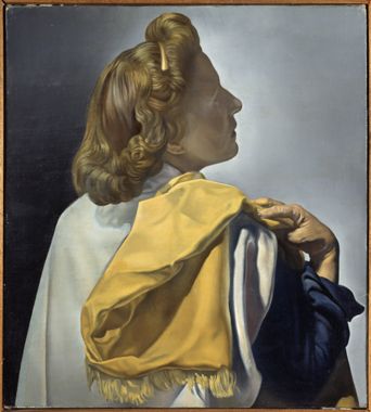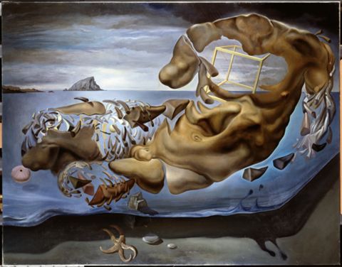 Dali, nude, entranced in the contemplation of five regular bodies metamorphosed in corpuscles, in which suddenly appears Leonardo’s “Leda”, chromosomatised by the face of Gala